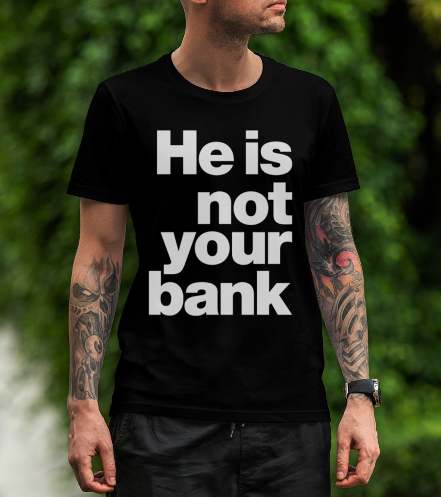 The He Is Not Your Bank T-shirt is designed for everyday wear and a consistent fit. Fabric is pre-shrunk ring-spun cotton with durable stitching. See the size chart below for exact measurements.