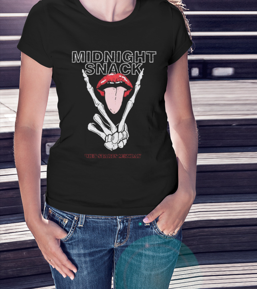 MIDNIGHT SNACK Skeleton Hands Tongue Lips Diet Starts Monday T-Shirt