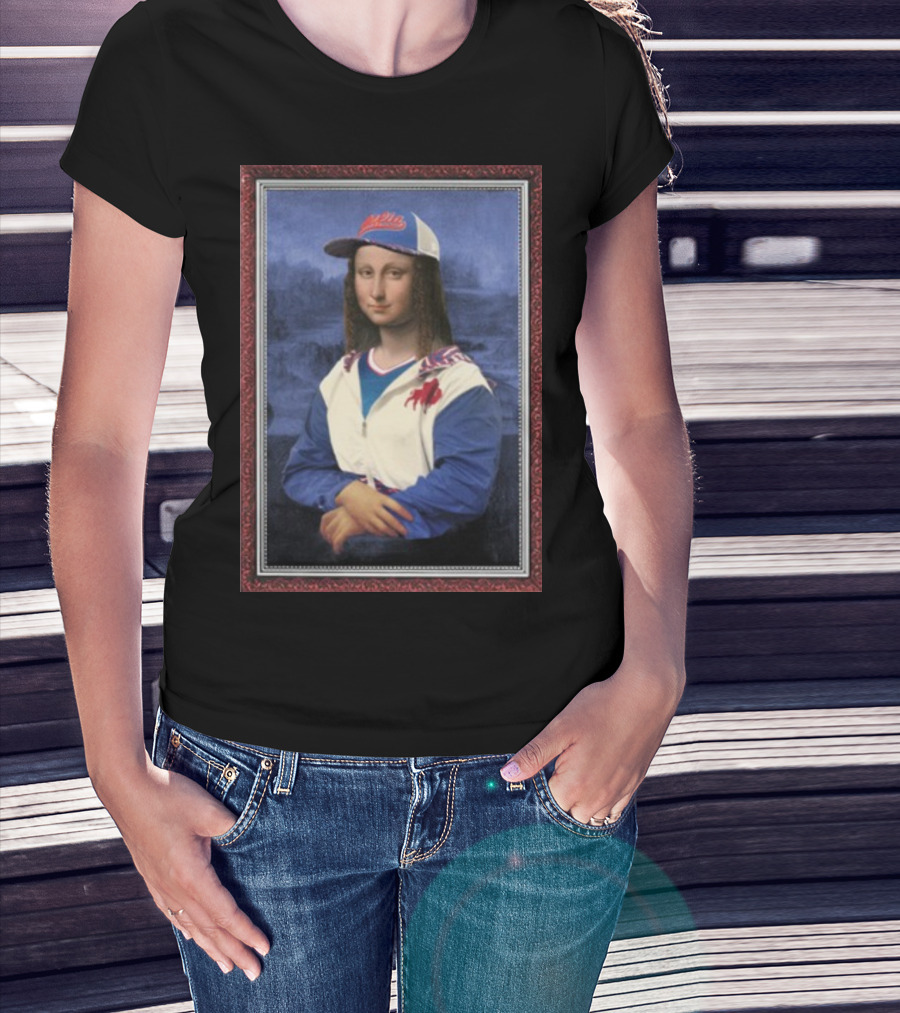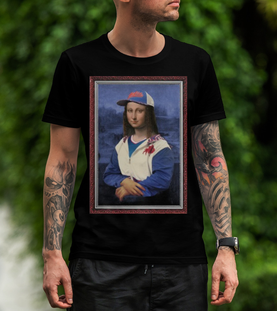 Mona Lisa With Buffalo Sports Cap And Jacket T-Shirt