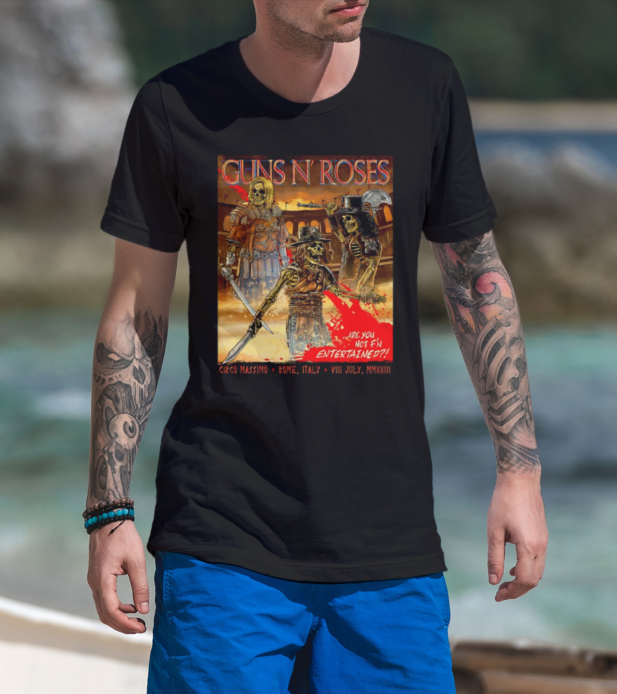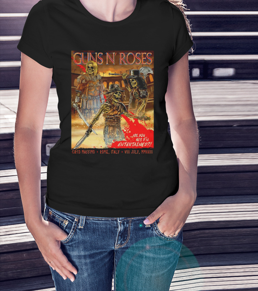 Guns N' Roses Circo Massimo Rome Italy VIII July MMXXIII Skeleton Warriors Are You Not F'N Entertained T-Shirt