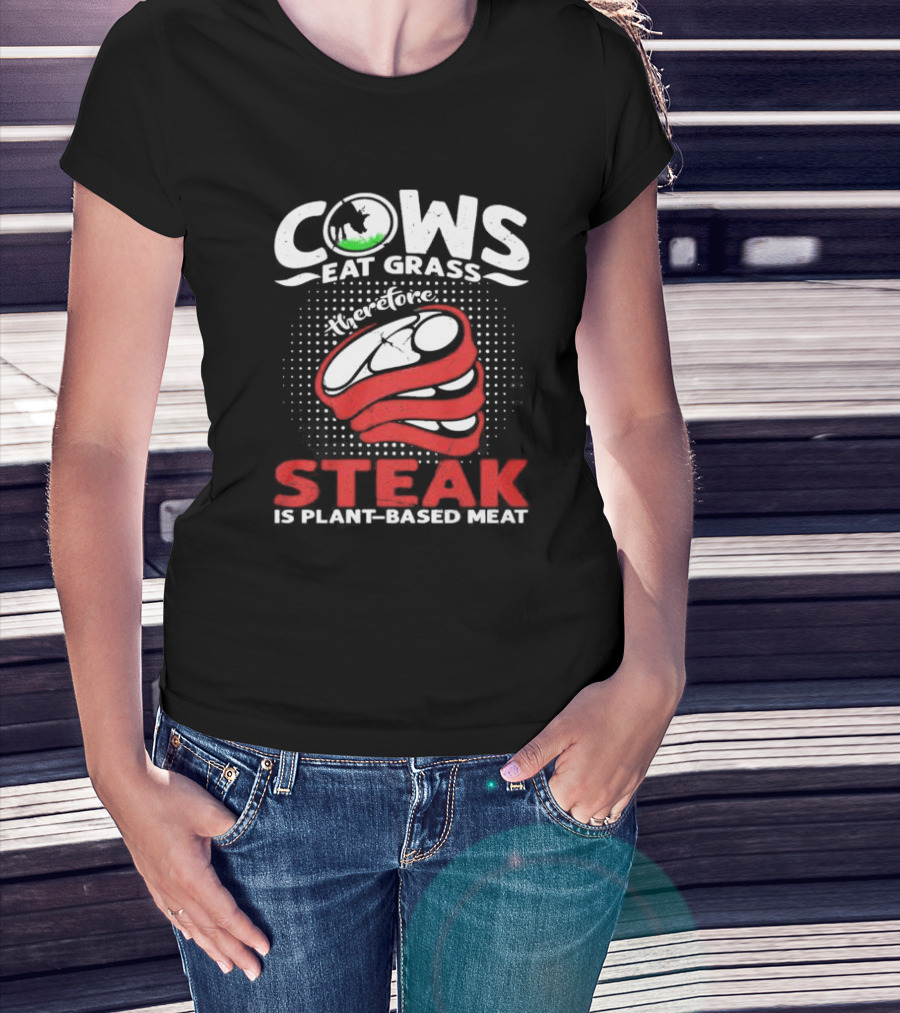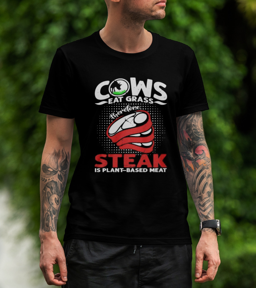 Cows Eat Grass Therefore Steak Is Plant-Based Meat With Cow Silhouette And Steak T-Shirt