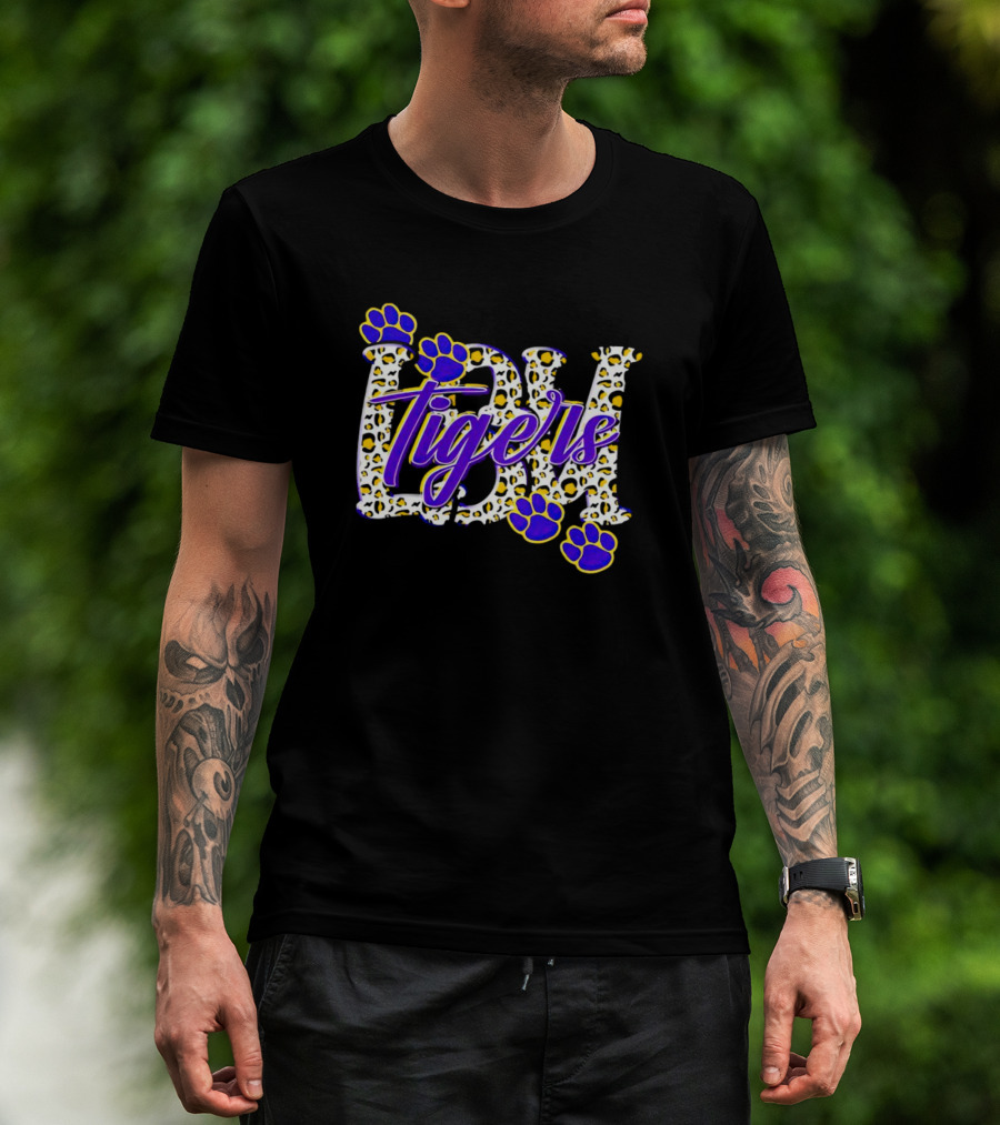 The Lsu Tigers Leopard Print with Blue and Yellow Paw Prints T-shirt is designed for everyday wear and a consistent fit. Fabric is pre-shrunk ring-spun cotton with durable stitching. See the size chart below for exact measurements.