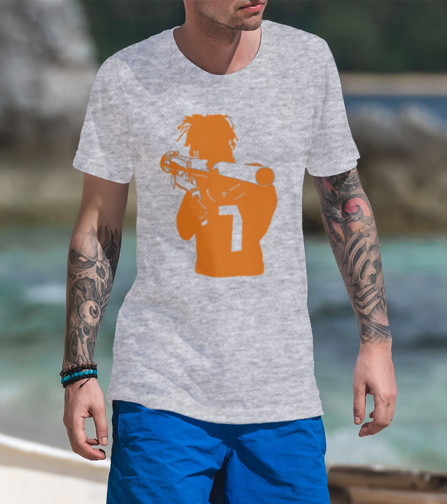 The Bigorangeheupel Bazooka Joe 7 Football Player T-shirt is designed for everyday wear and a consistent fit. Fabric is pre-shrunk ring-spun cotton with durable stitching. See the size chart below for exact measurements.