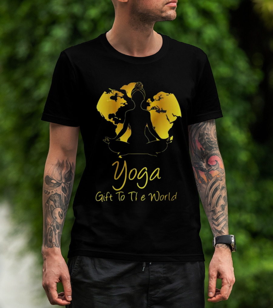 Yoga Gift To The World Globe Silhouette Meditation T-Shirt