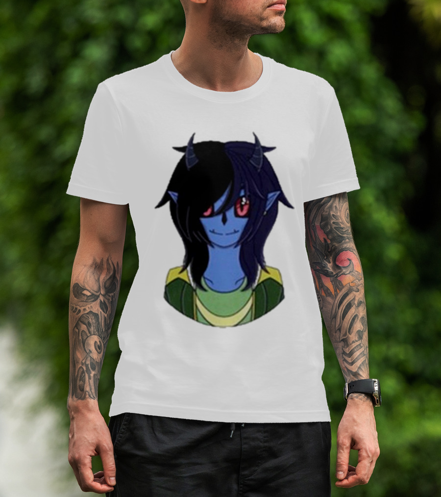 The Zombicplayz's Anime-Style Blue Demon Character with Red Eyes and Horns T-shirt is designed for everyday wear and a consistent fit. Fabric is pre-shrunk ring-spun cotton with durable stitching. See the size chart below for exact measurements.
