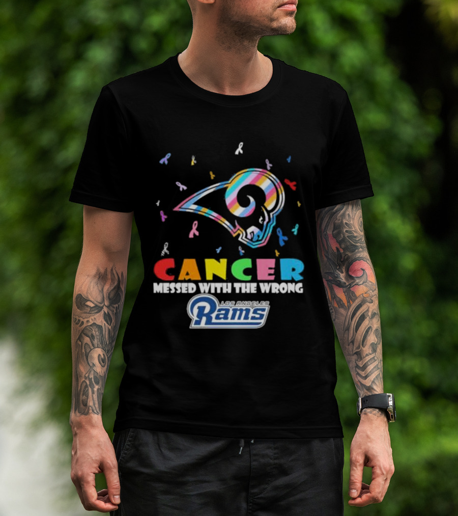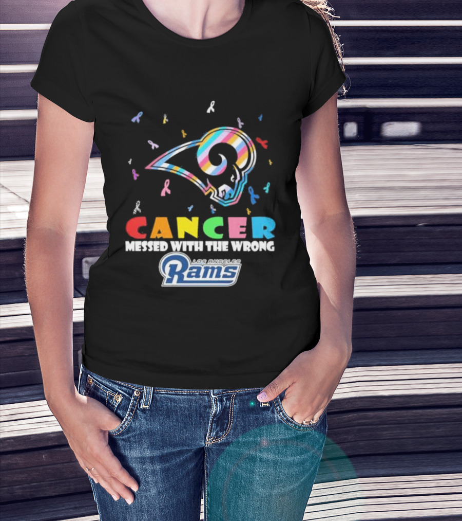 Cancer Messed With The Wrong Los Angeles Rams Multicolor Ribbon T-Shirt