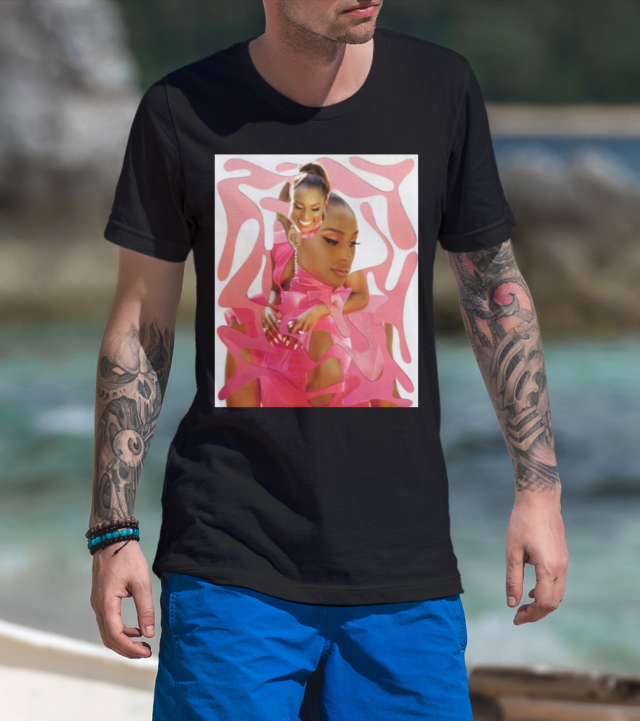 The Ian Woods Issa Rae At The Barbie Fragmented Pink T-shirt is designed for everyday wear and a consistent fit. Fabric is pre-shrunk ring-spun cotton with durable stitching. See the size chart below for exact measurements.