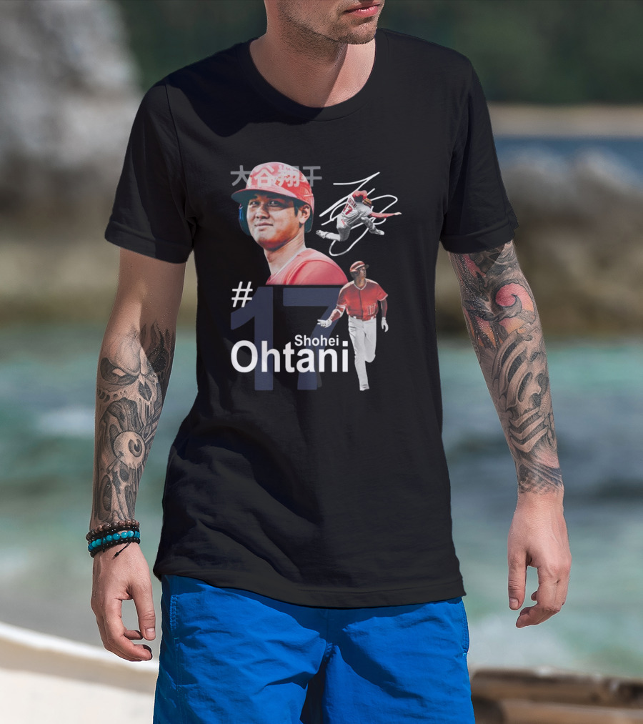 Shohei Ohtani Dynamic #17 Action Poses And Japanese Text T-Shirt