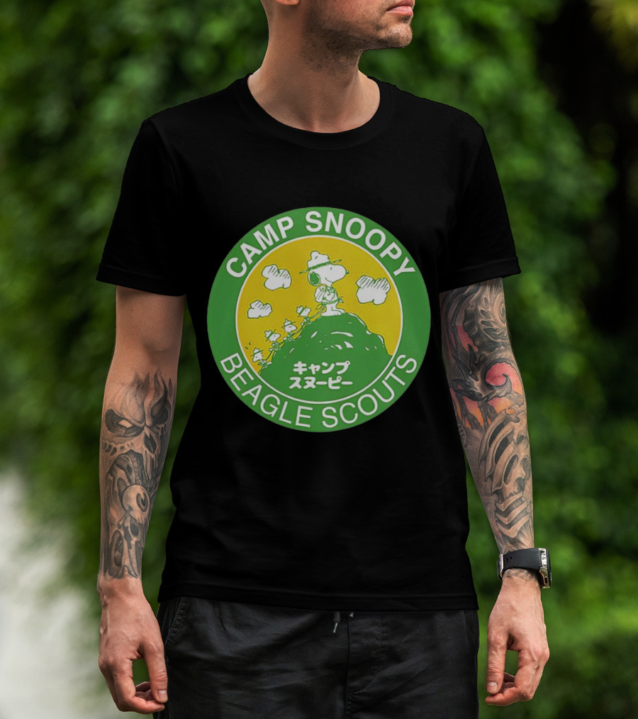 The Camp Snoopy Beagle Scouts T-shirt is designed for everyday wear and a consistent fit. Fabric is pre-shrunk ring-spun cotton with durable stitching. See the size chart below for exact measurements.