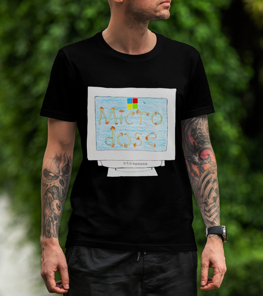 The Microdose Windows Parody with Magic Mushrooms on Vintage Computer Screen T-shirt is designed for everyday wear and a consistent fit. Fabric is pre-shrunk ring-spun cotton with durable stitching. See the size chart below for exact measurements.