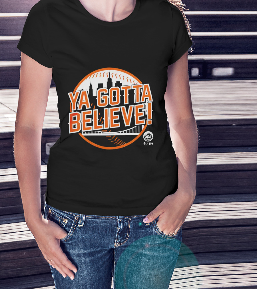 Ya Gotta Believe New York Mets Skyline Baseball T-Shirt