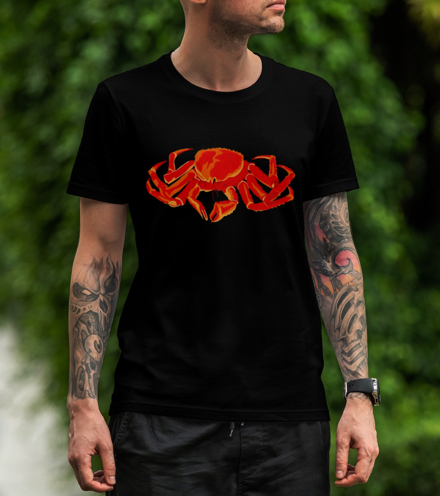 The Wendy Carlos Crab Bold Red T-shirt is designed for everyday wear and a consistent fit. Fabric is pre-shrunk ring-spun cotton with durable stitching. See the size chart below for exact measurements.