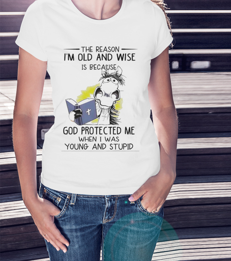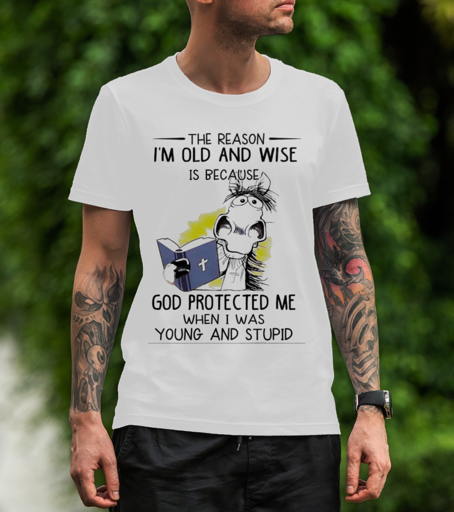 The Reason I'm Old And Wise Is Because God Protected Me When I Was Young And Stupid Cow Cartoon Reading Bible T-Shirt