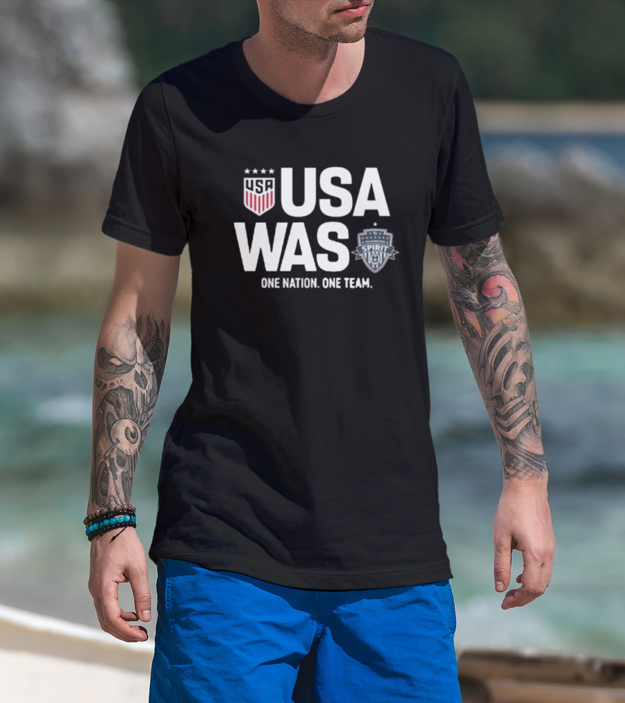 The USA WAS One Nation One Team Spirit T-shirt is designed for everyday wear and a consistent fit. Fabric is pre-shrunk ring-spun cotton with durable stitching. See the size chart below for exact measurements.