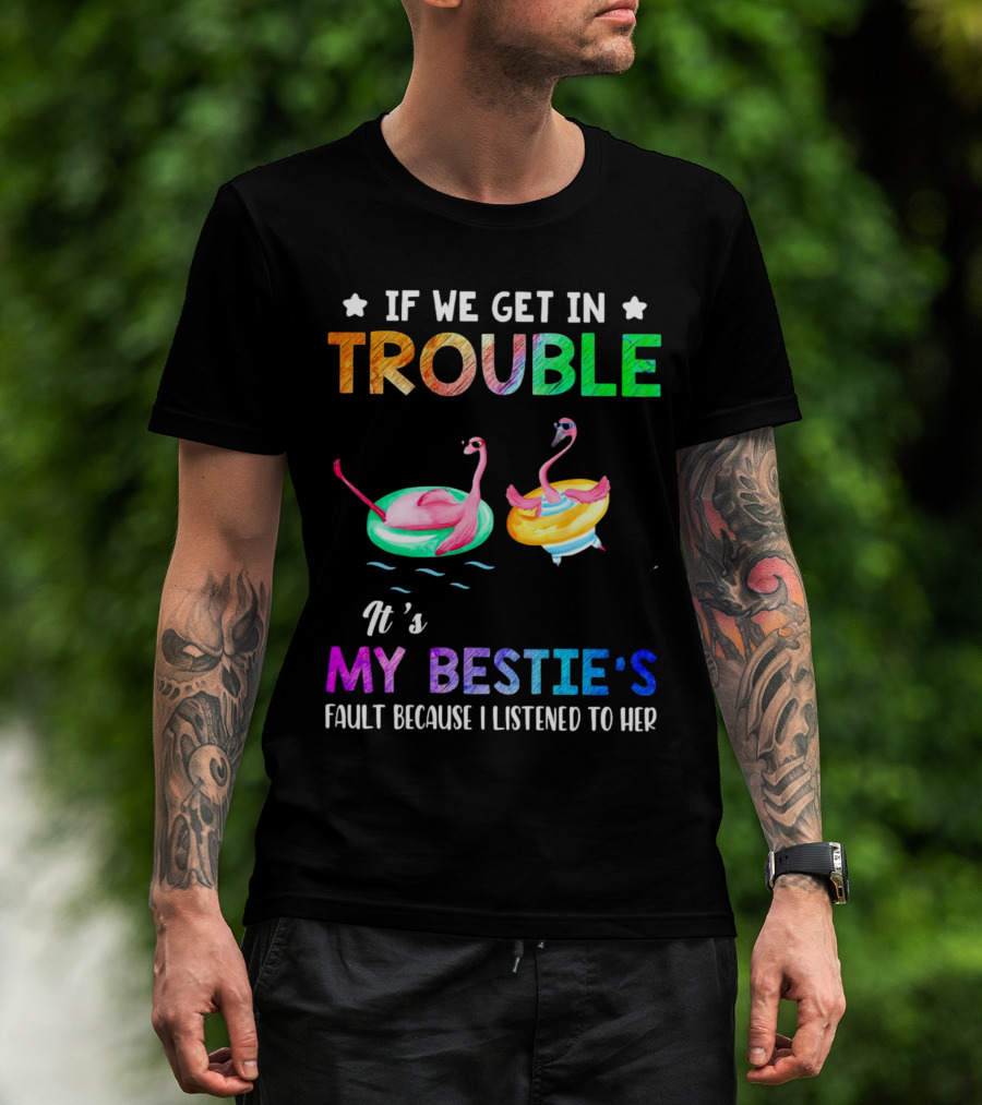 If We Get In Trouble It's My Bestie's Fault Because I Listened To Her Flamingo Floating Fun T-Shirt