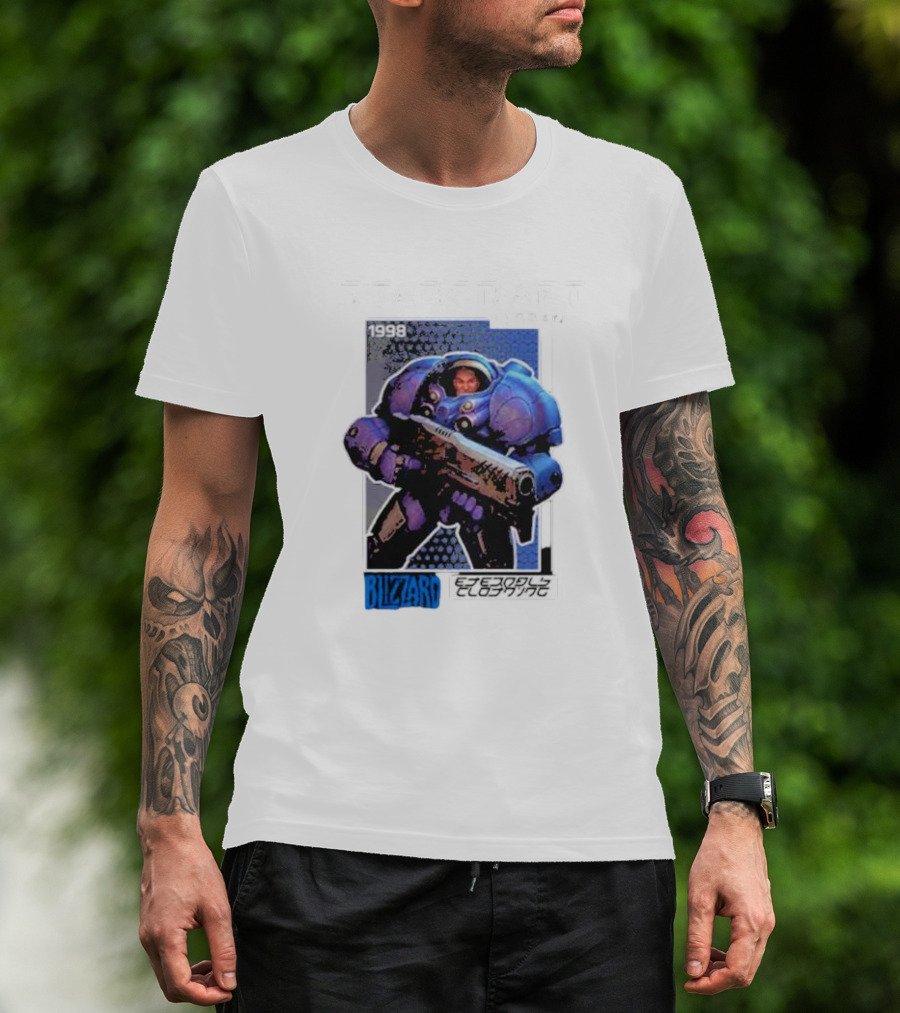 The Starcraft Terran 1998 Blizzard Eteson's Clothing T-shirt is designed for everyday wear and a consistent fit. Fabric is pre-shrunk ring-spun cotton with durable stitching. See the size chart below for exact measurements.