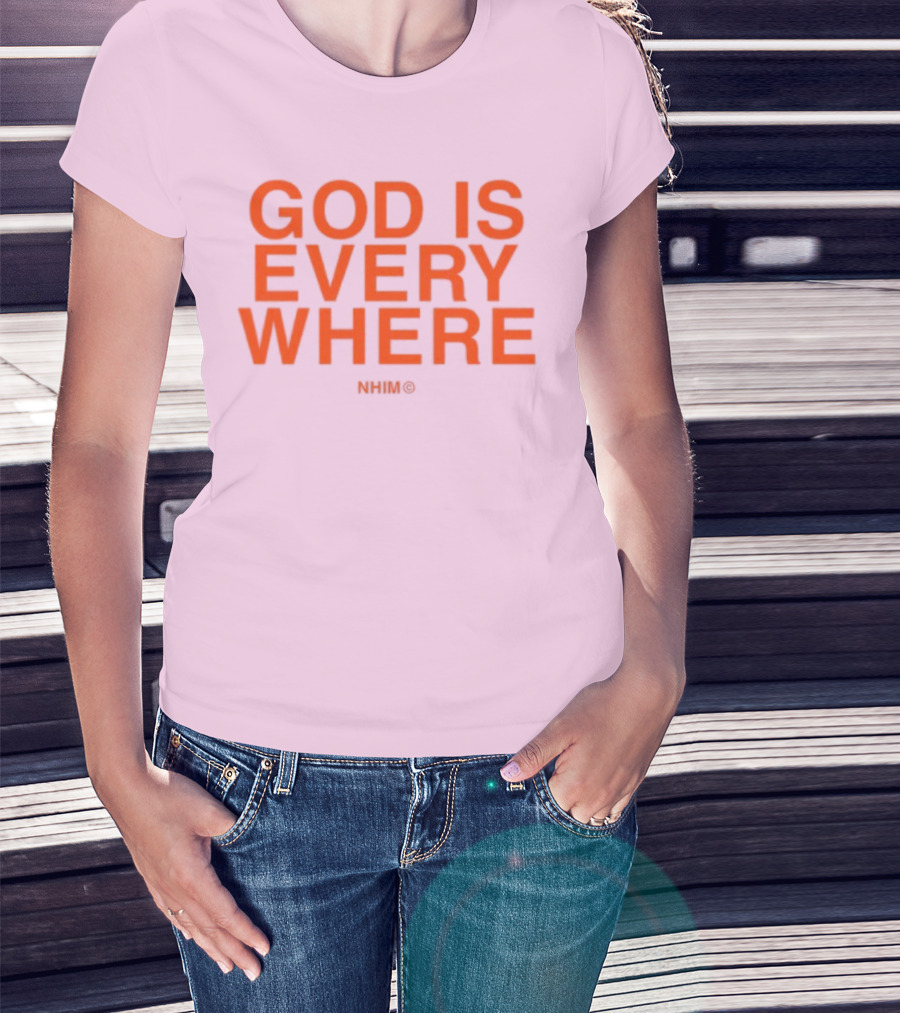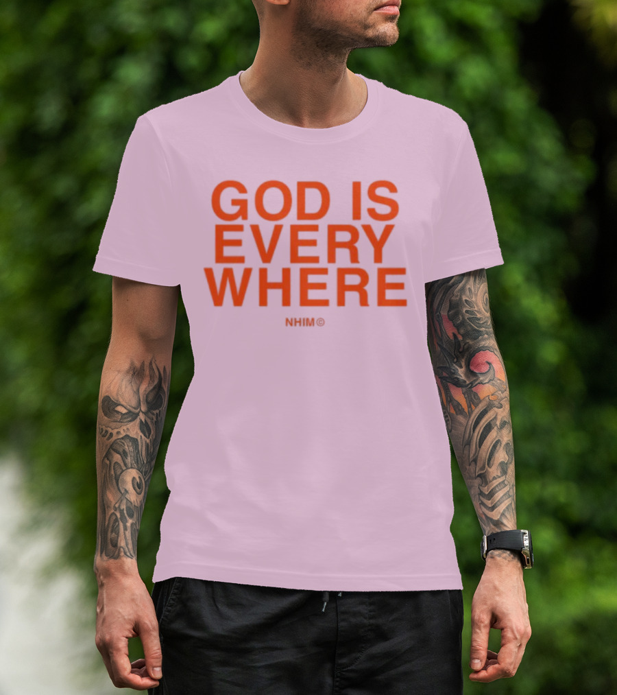 The Nhim God Is Everywhere Text T-shirt is designed for everyday wear and a consistent fit. Fabric is pre-shrunk ring-spun cotton with durable stitching. See the size chart below for exact measurements.