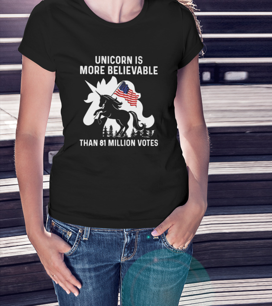 Unicorn Is More Believable Than 81 Million Votes American Flag T-Shirt