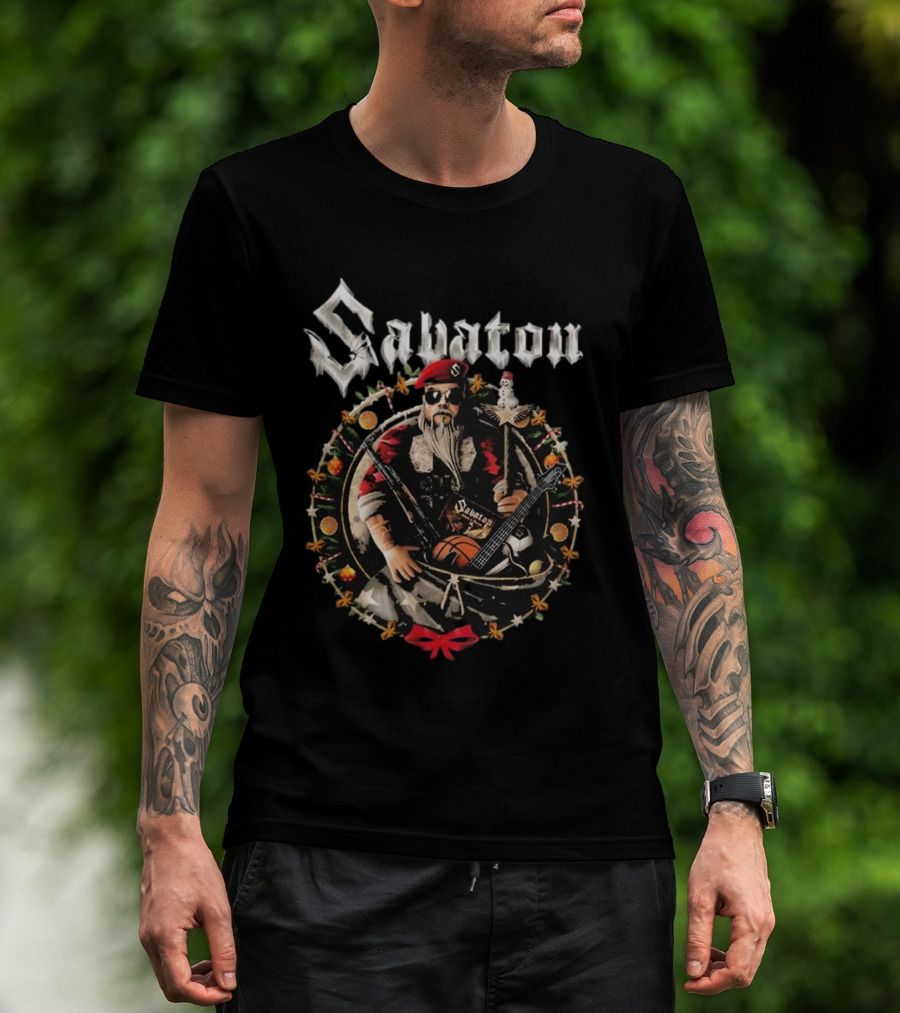 The Sabaton Heavy X-Mas Joakim Santa Claus with Guitar and Basketball T-shirt is designed for everyday wear and a consistent fit. Fabric is pre-shrunk ring-spun cotton with durable stitching. See the size chart below for exact measurements.