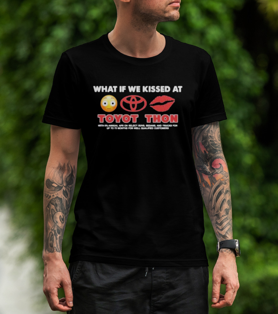 What If We Kissed At Toyotathon Emoji Lips Toyota Logo Toyot Thon 0% APR SUVs Sedans Trucks 72 Months Qualified Customers T-Shirt