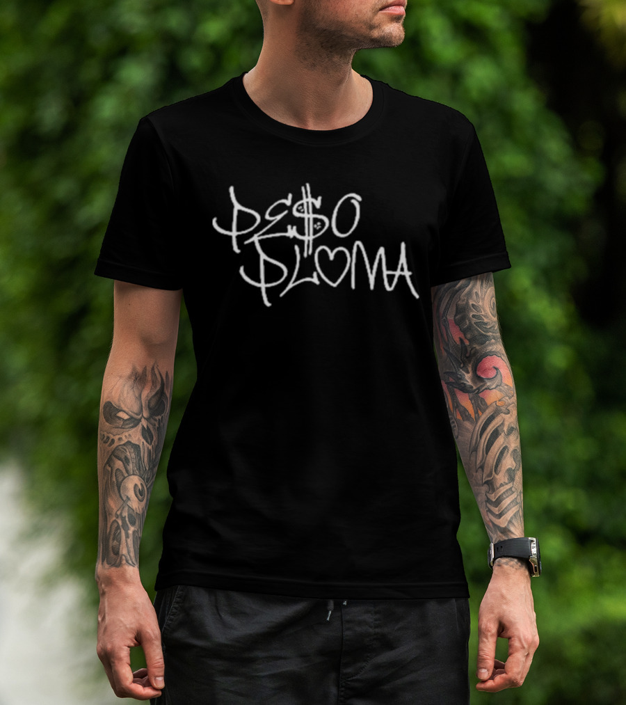 PE$O PLUMA Graffiti Style Text With Heart Symbolization T-Shirt
