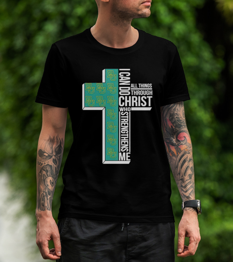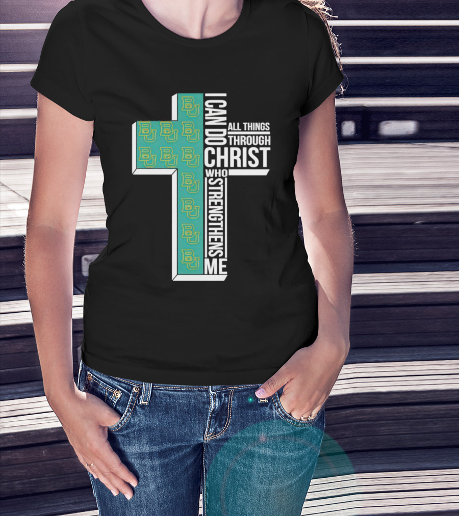 Baylor Bears BU Cross I Can Do All Things Through Christ Who Strengthens Me T-Shirt