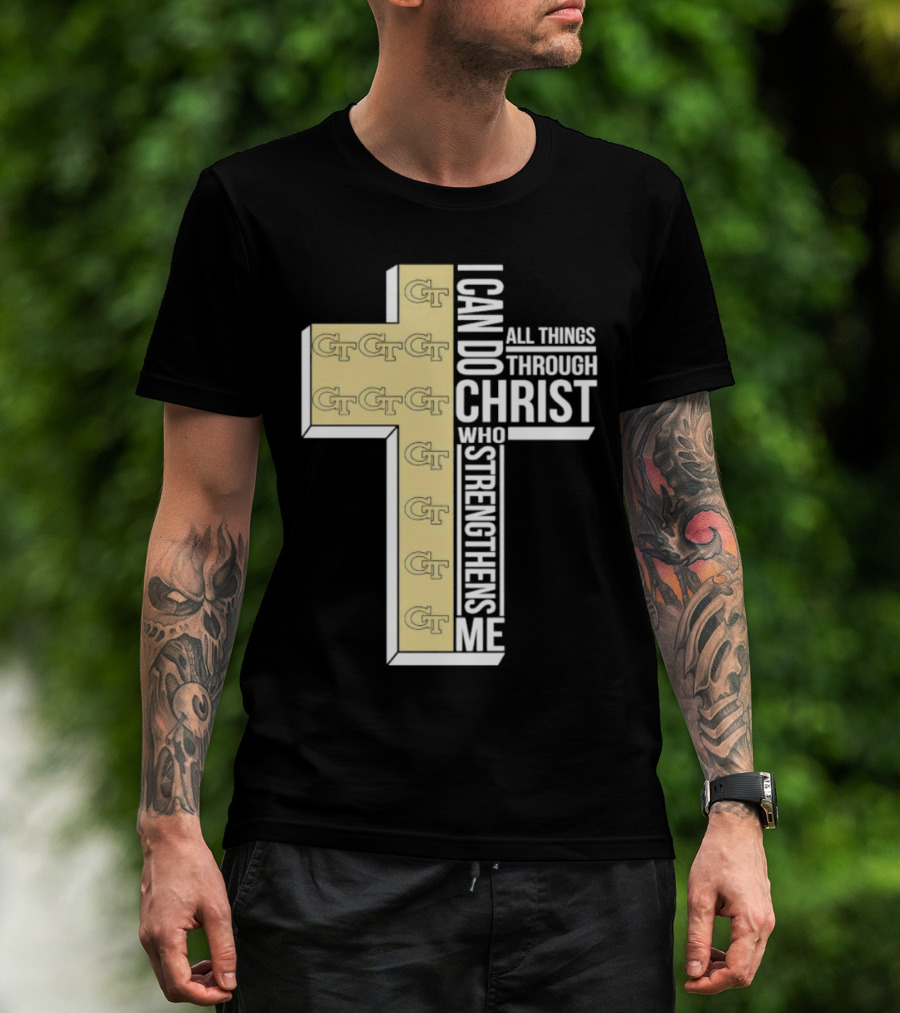 Georgia Tech Yellow Jackets GT Cross I Can Do All Things Through Christ Who Strengthens Me T-Shirt