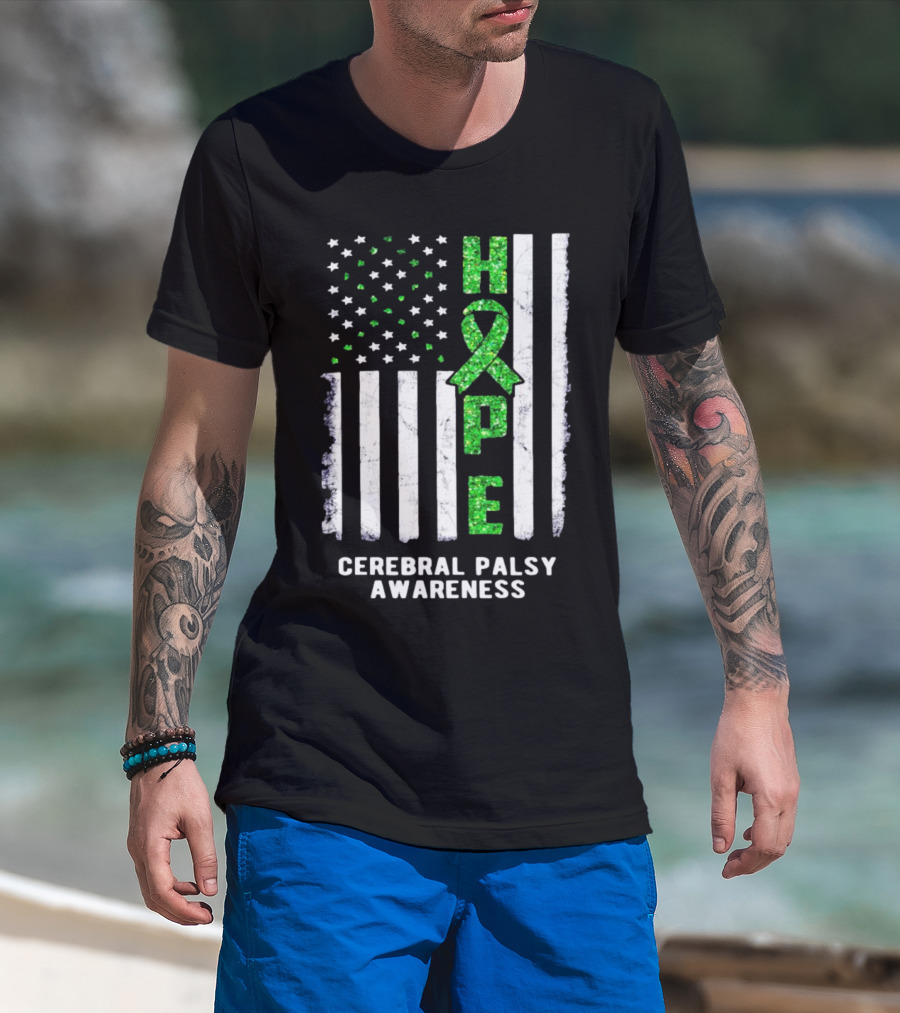 Hope American Flag Green Ribbon Cerebral Palsy Awareness T-Shirt