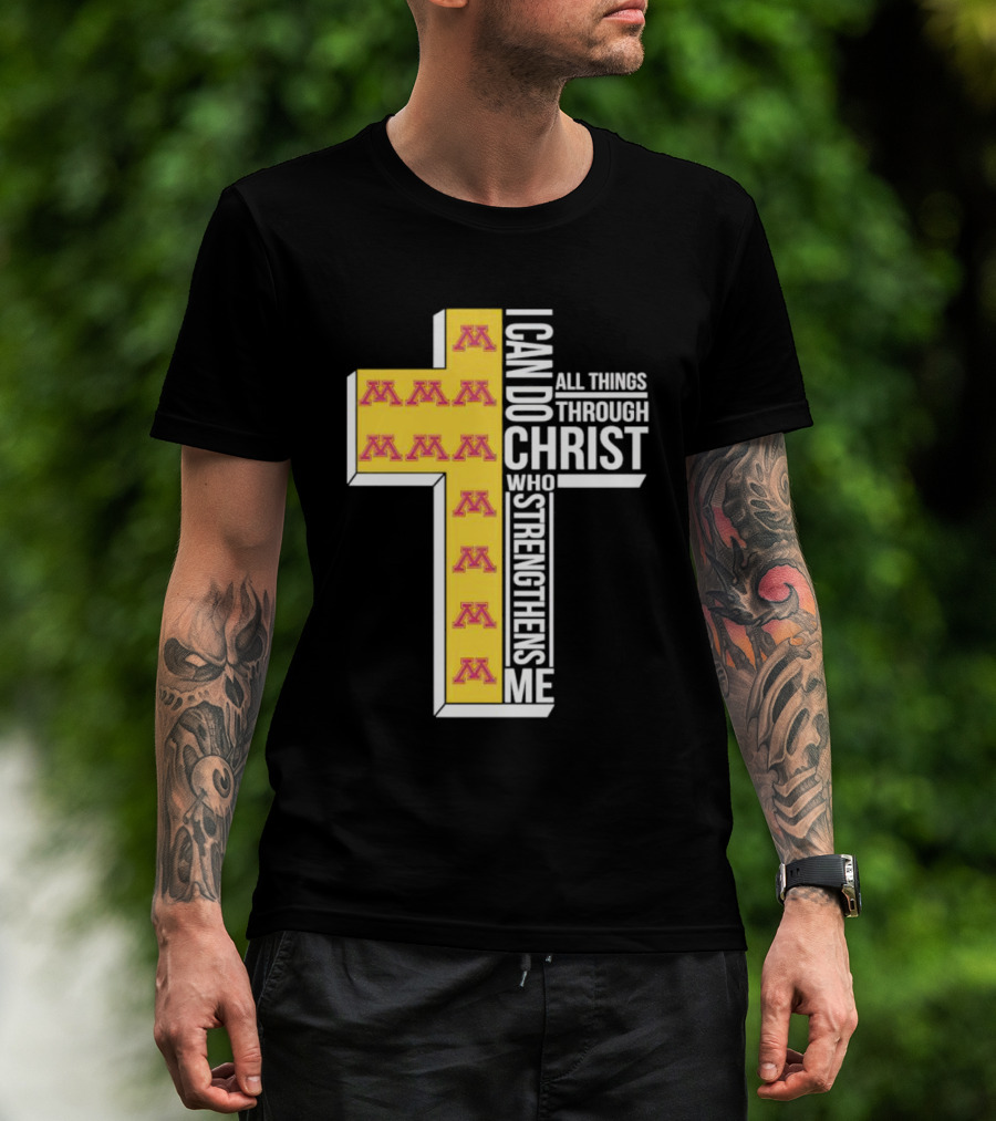 Minnesota Golden Gophers Logo Cross I Can Do All Things Through Christ Who Strengthens Me T-Shirt