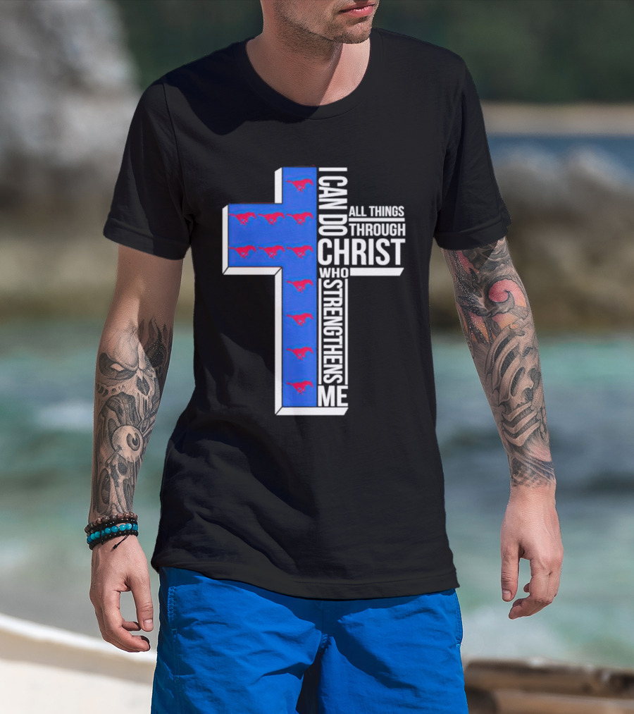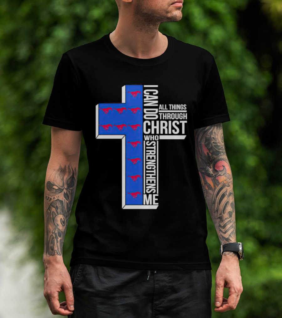 SMU Mustangs I Can Do All Things Through Christ Who Strengthens Me Cross T-Shirt