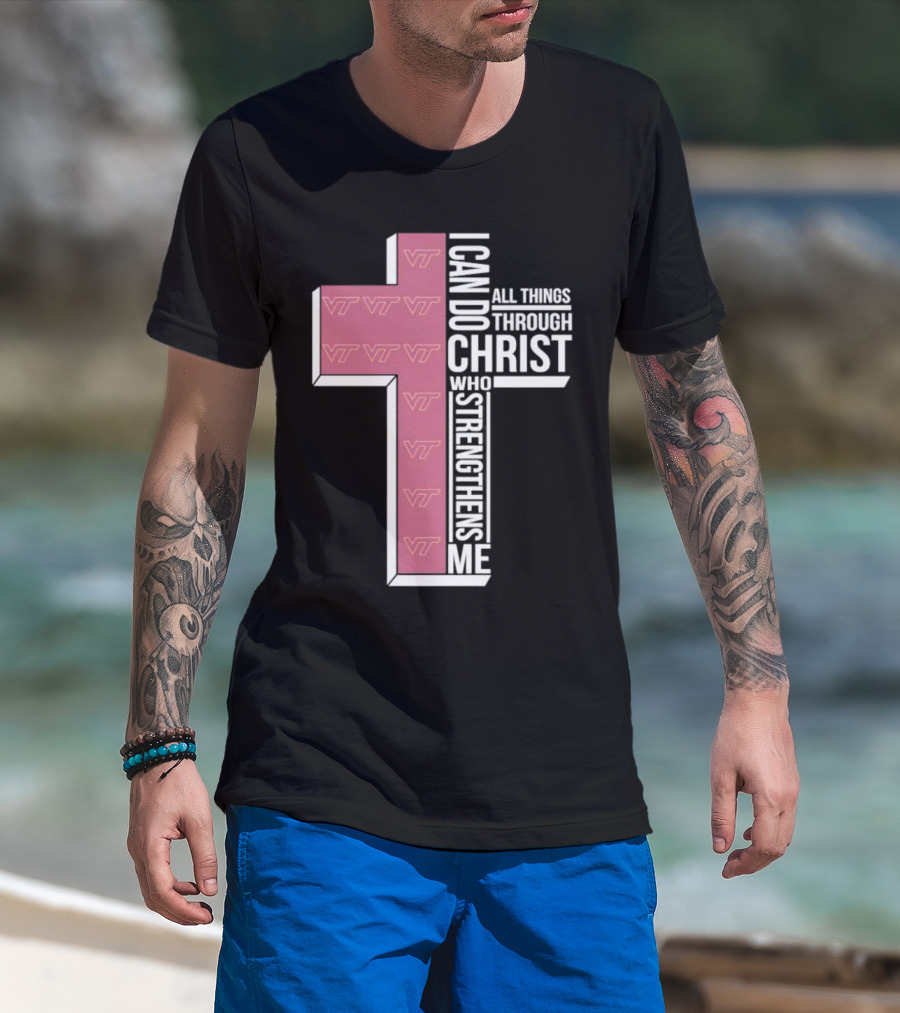 Virginia Tech Hokies I Can Do All Things Through Christ Who Strengthens Me Cross T-Shirt