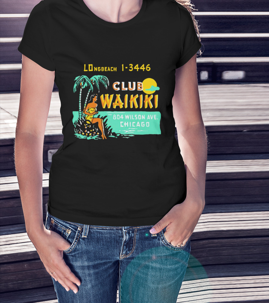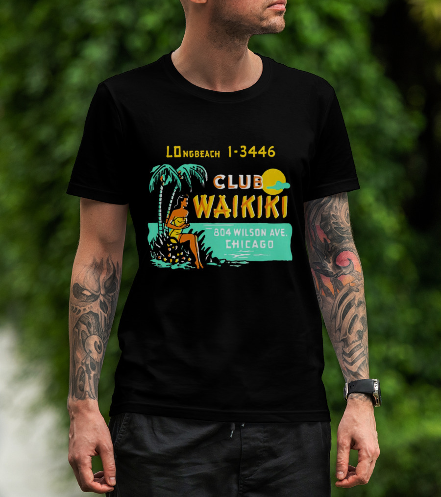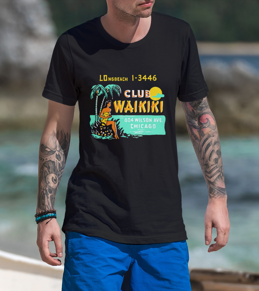 Club Waikiki 804 Wilson Ave Chicago Longbeach 1-3446 Vintage Tiki Bar T-Shirt