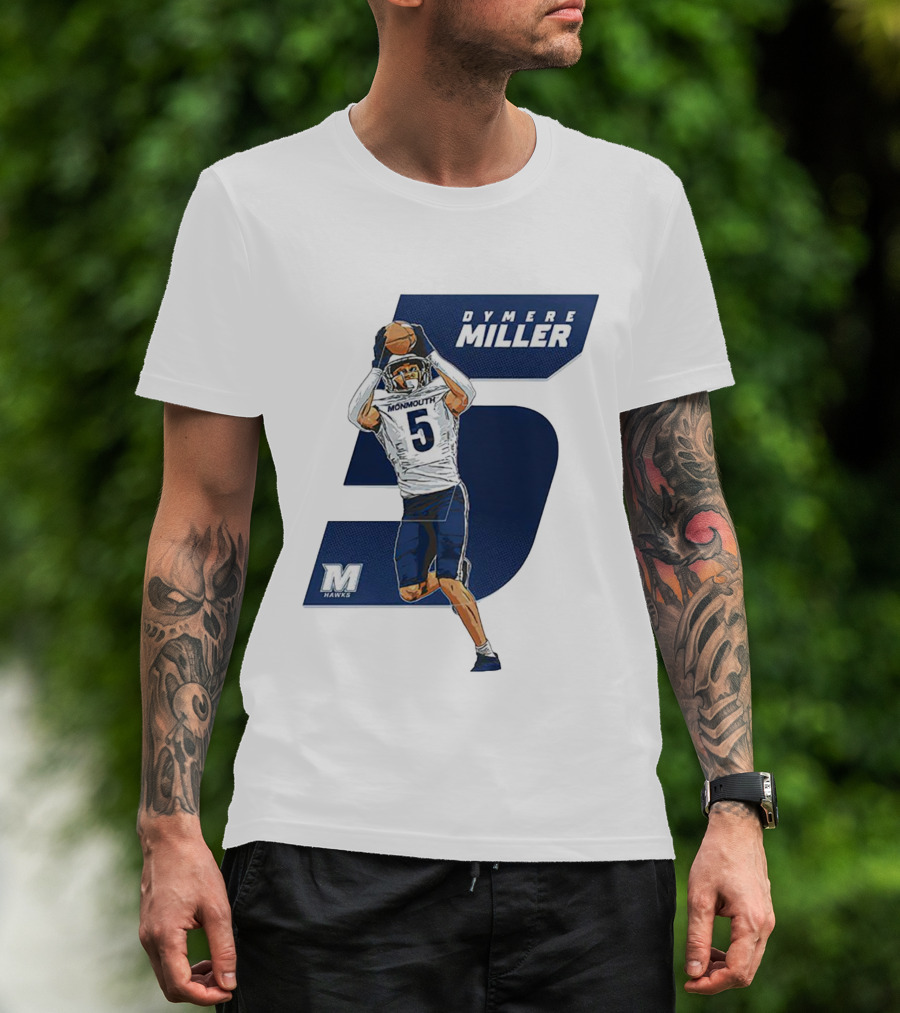 Dymere Miller Monmouth Hawks Football Number 5 Caricature T-Shirt