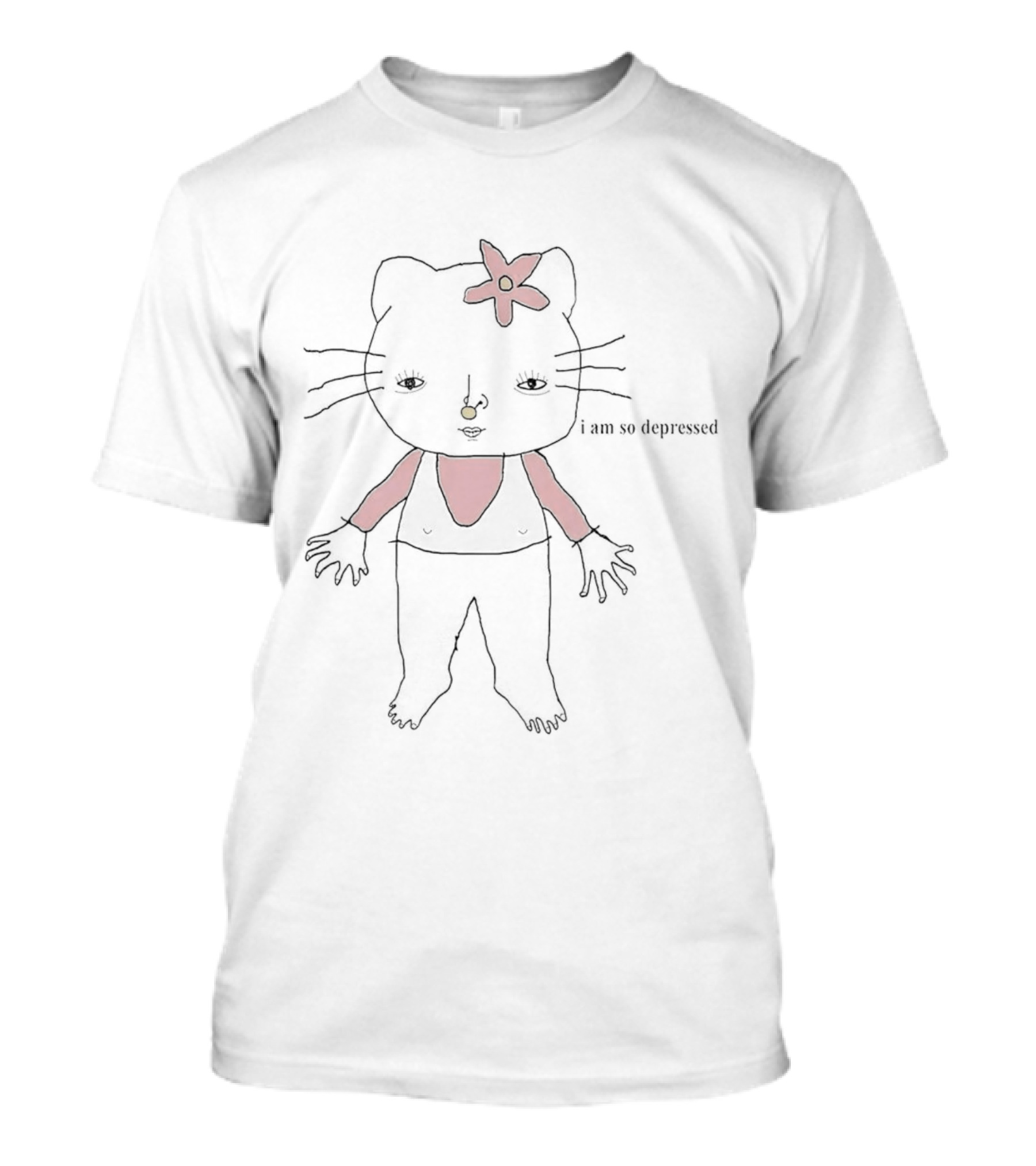 I Am So Depressed Hello Kitty Red Flower T-Shirt