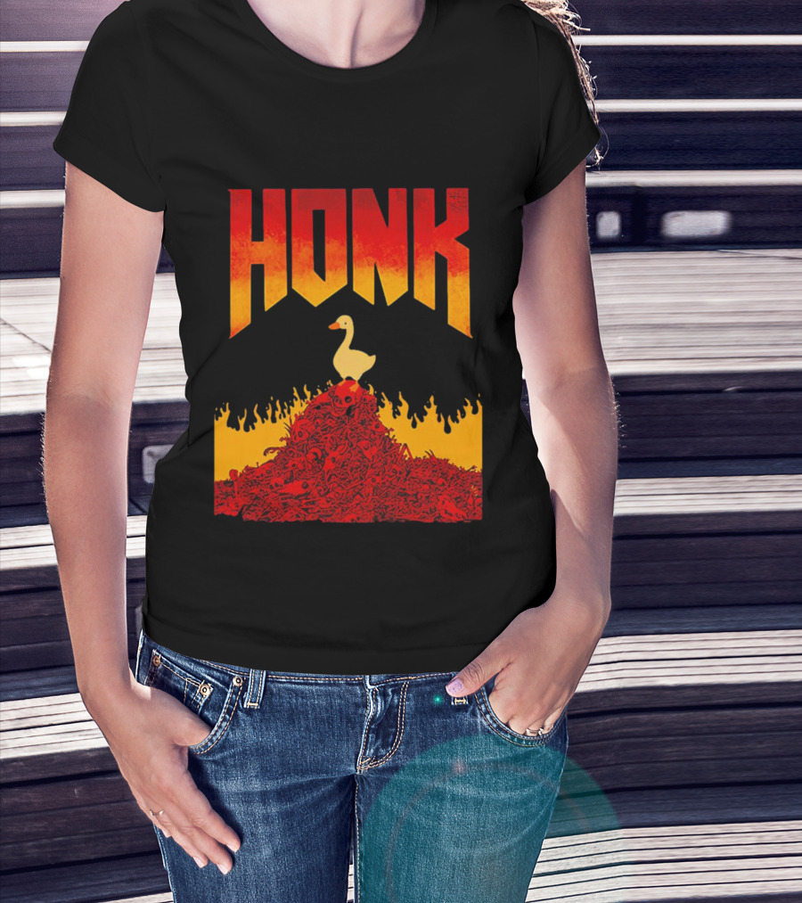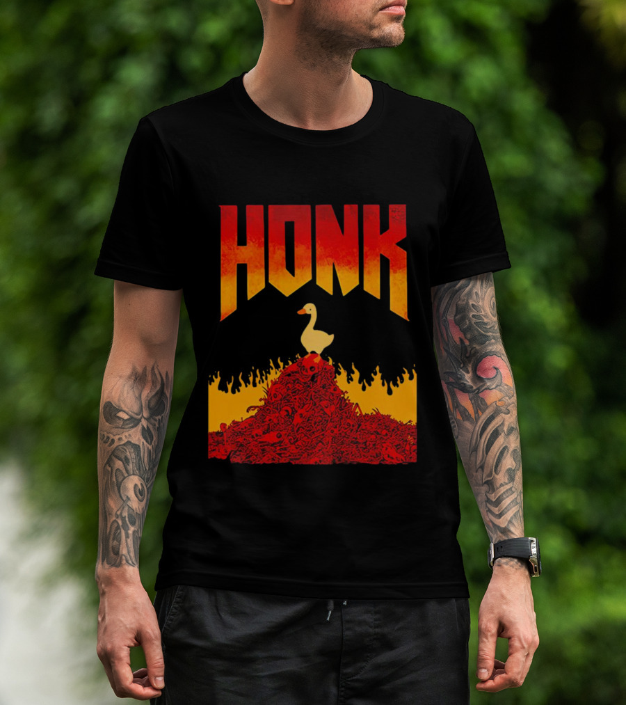 Honk Goose On Fiery Doom Inspired Mountain T-Shirt