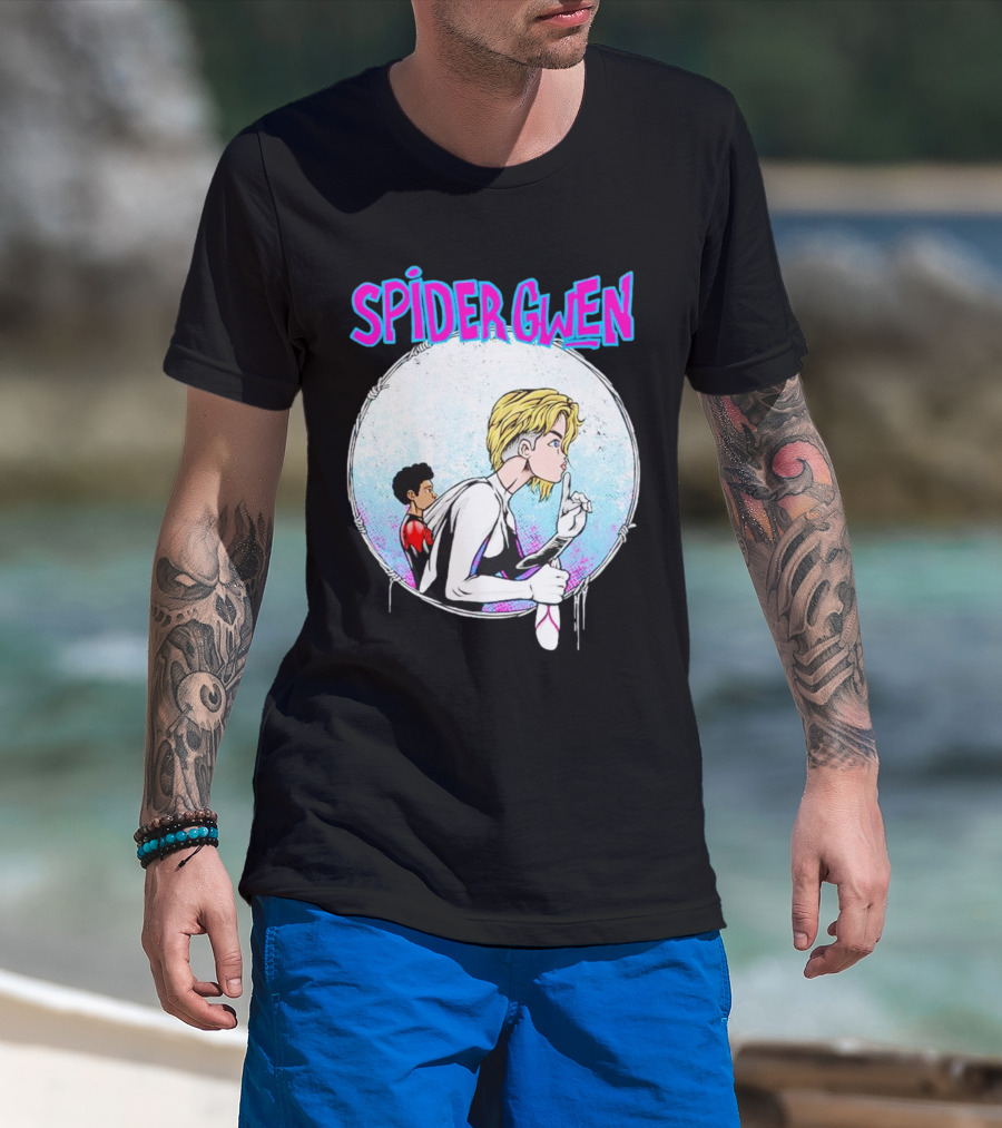 Spider-Gwen Silence Gesture With Spider Emblem Background T-Shirt
