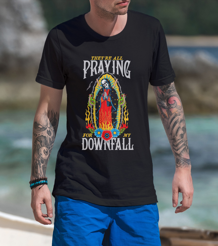 THEY’RE ALL PRAYING FOR MY DOWNFALL SKELETON VIRGIN MARY WITH SNAKES AND FLAMES T-Shirt