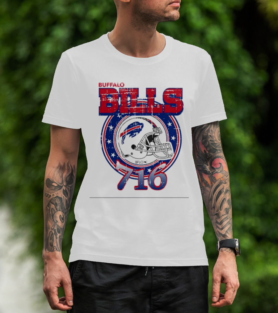 The Buffalo Bills 716 Day NFL T-shirt is designed for everyday wear and a consistent fit. Fabric is pre-shrunk ring-spun cotton with durable stitching. See the size chart below for exact measurements.