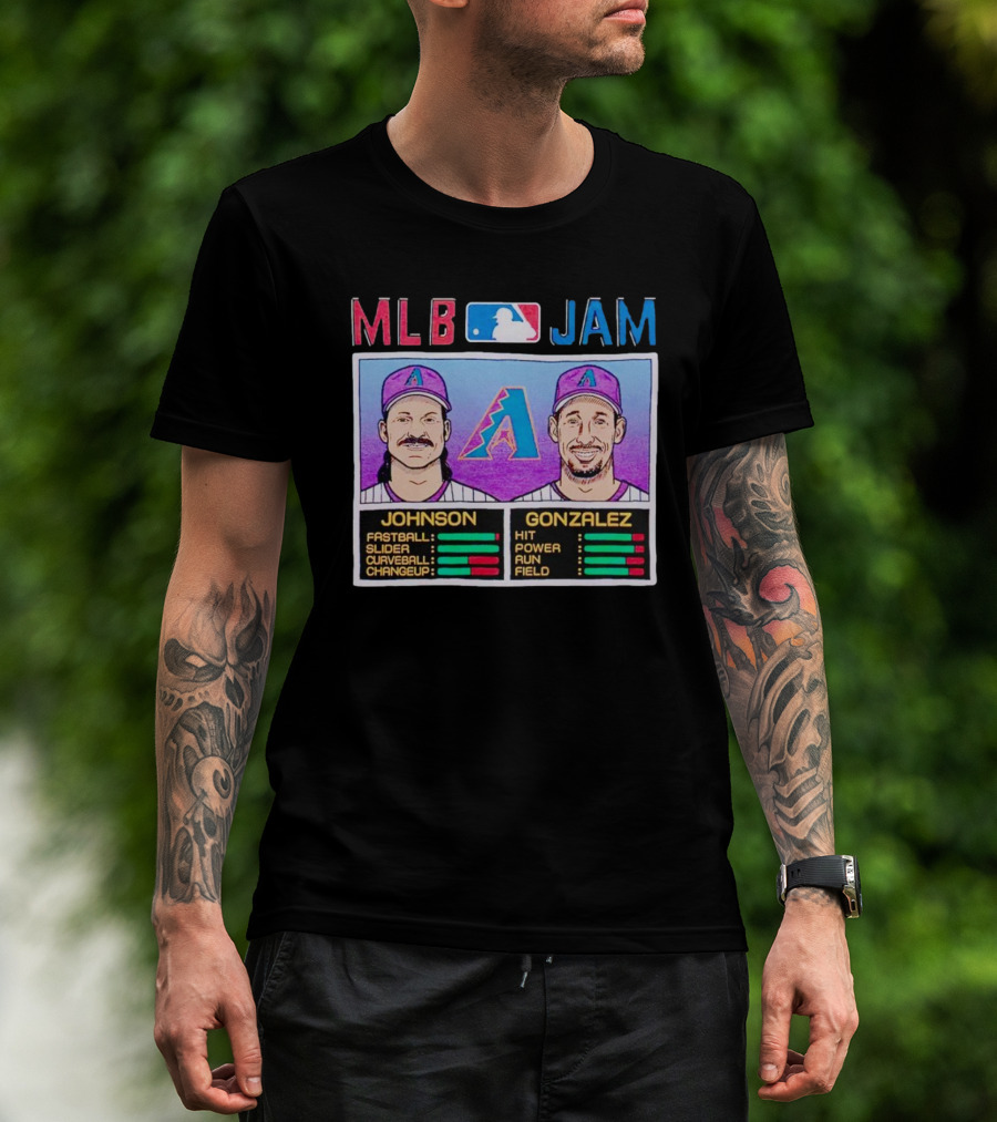 MLB Jam Arizona Diamondbacks Johnson Gonzalez Fastball Slider Curveball Changeup Hit Power Run Field T-Shirt