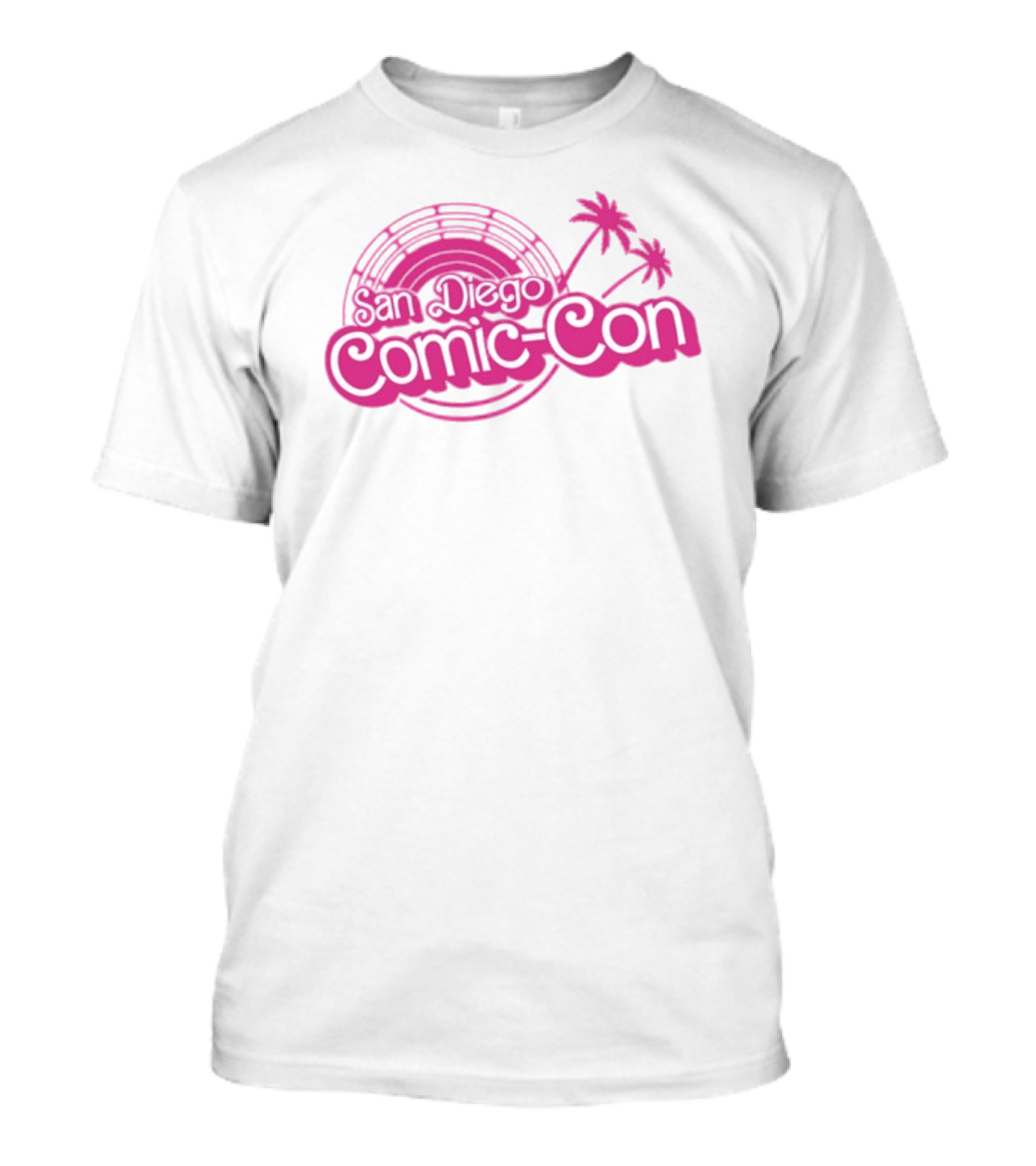 The San Diego Comic-Con Pink Retro Palm Trees T-shirt is designed for everyday wear and a consistent fit. Fabric is pre-shrunk ring-spun cotton with durable stitching. See the size chart below for exact measurements.