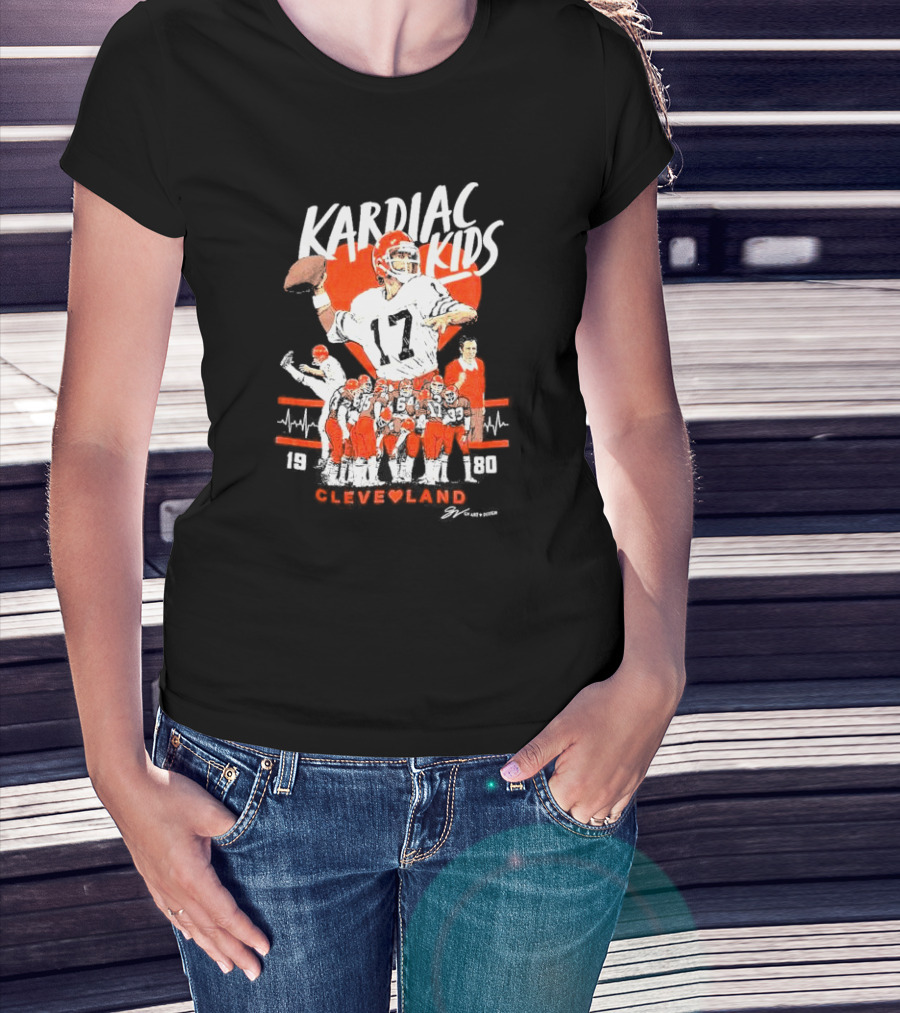 Kardiac Kids 1980 Cleveland Football Team Retro Quarterback Number 17 Sports Nostalgia T-Shirt