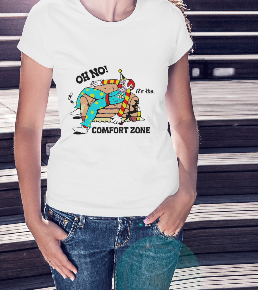 Oh No It’s The Comfort Zone Clown In Polka Dot Outfit On Couch T-Shirt