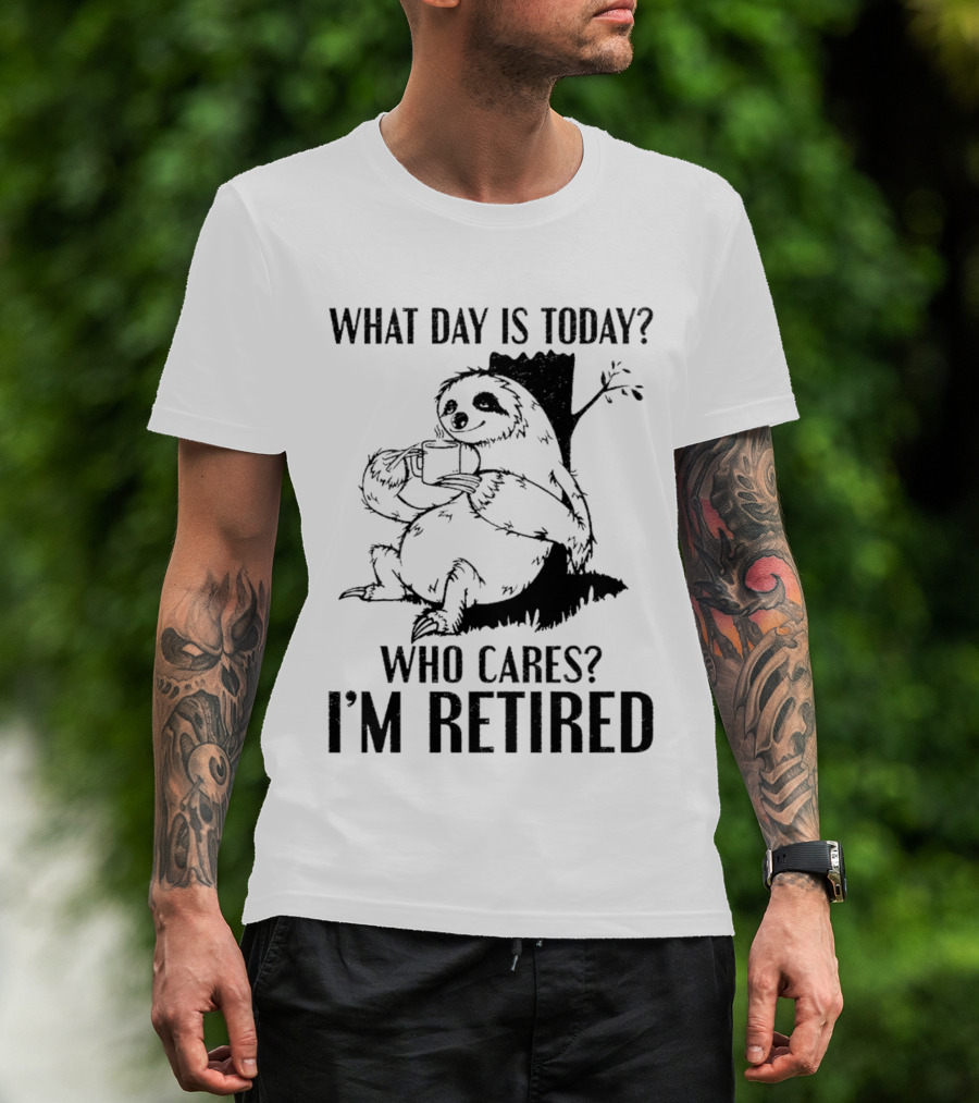 What Day Is Today Who Cares I'm Retired Sloth Relaxation T-Shirt