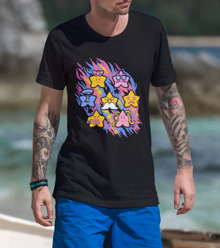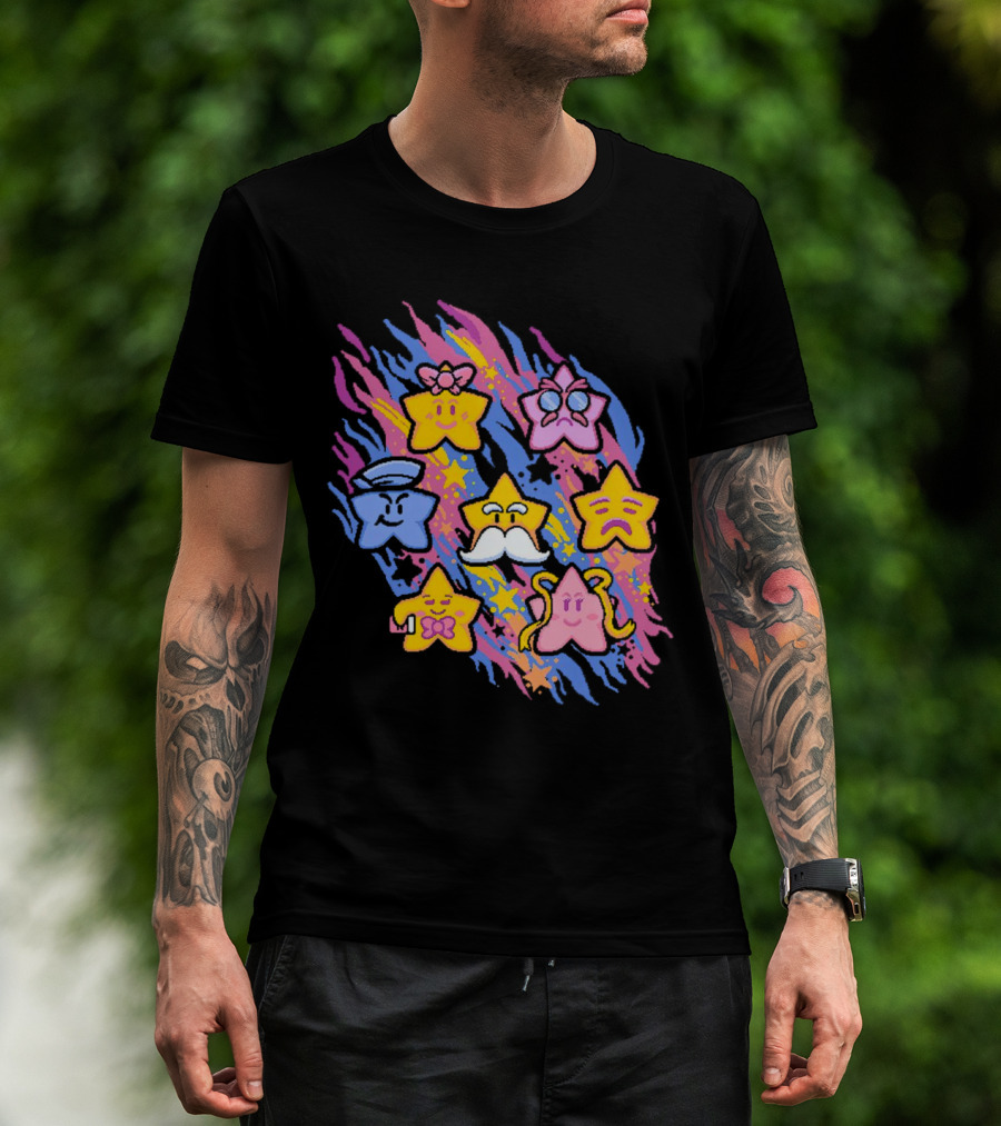 Paper Mario Star Spirits Characters With Colorful Background T-Shirt