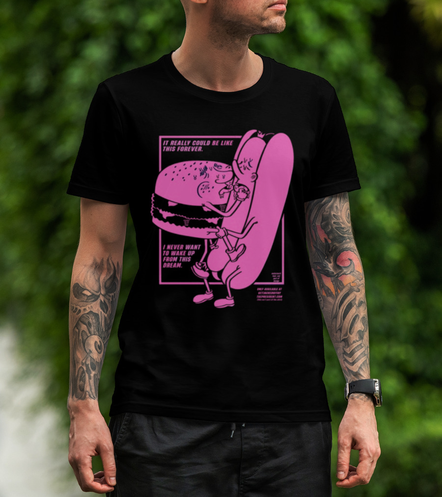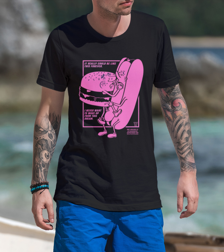 It Really Could Be Like This Forever I Never Want To Wake Up From This Dream Hot Dog And Burger Embrace T-Shirt