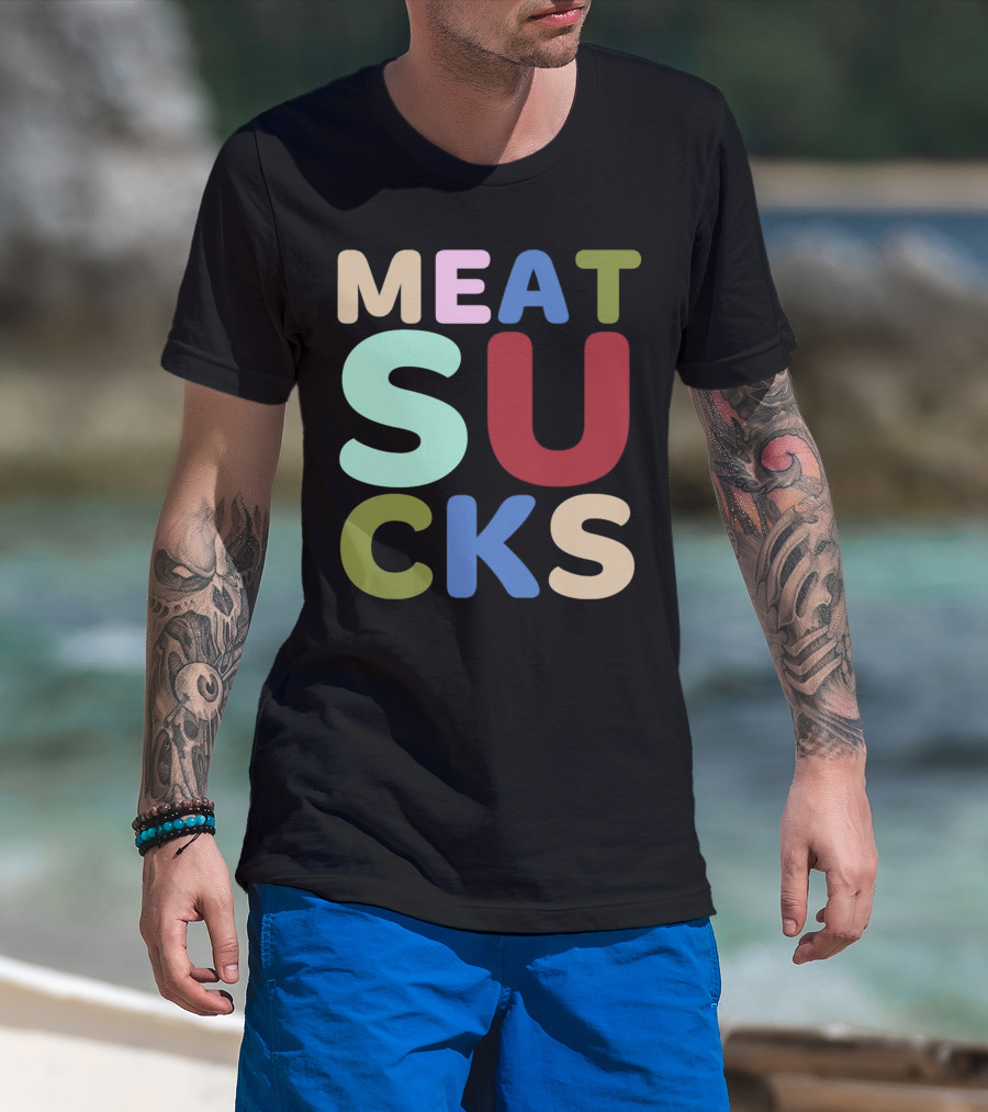 Meat Sucks Multicolored Bold Block Letters T-Shirt