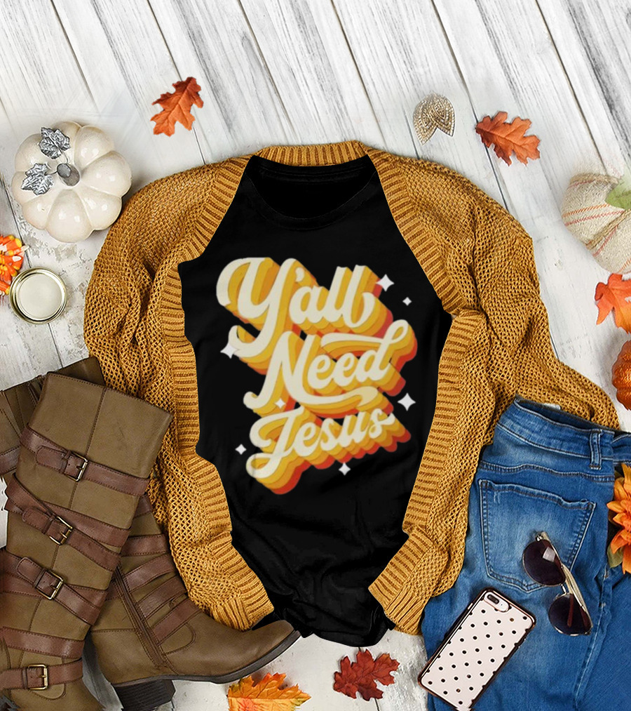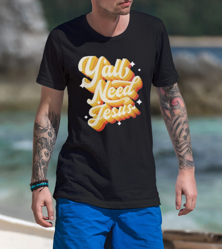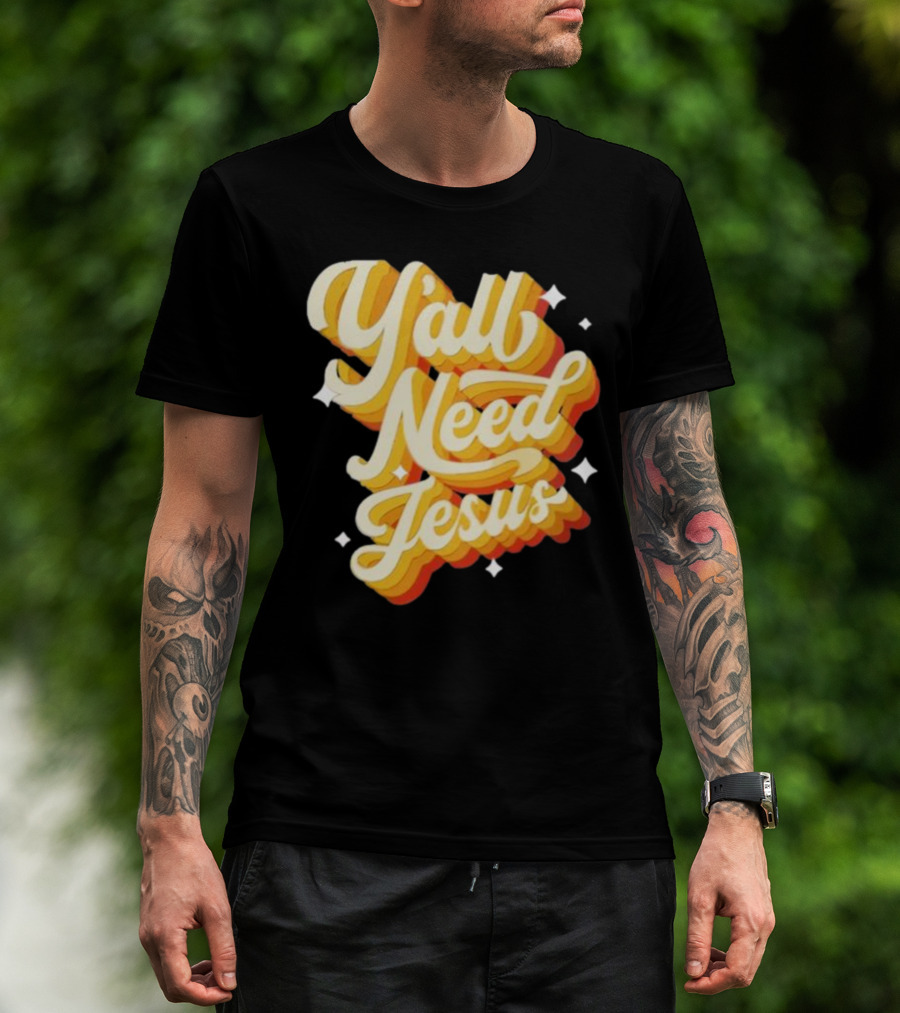 Y’all Need Jesus Retro Style Text With Stars T-Shirt