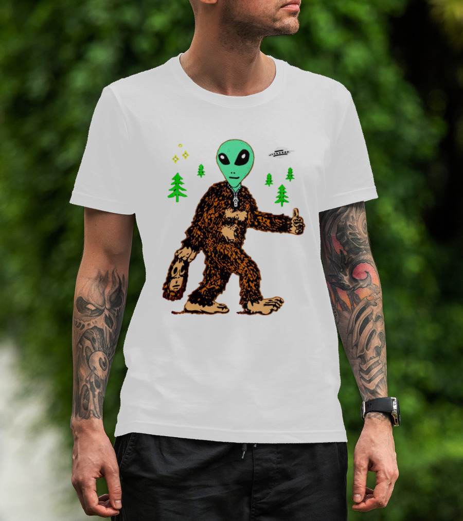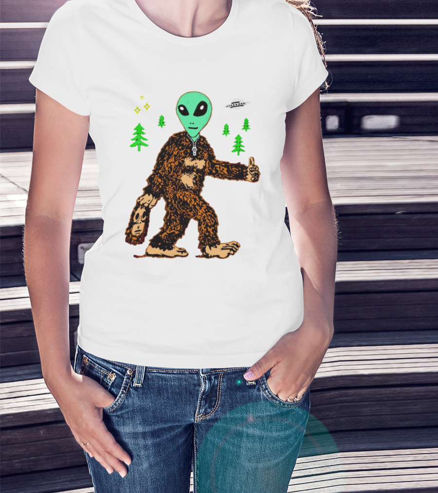 Alien Bigfoot Encounter Forest UFO Adventure T-Shirt