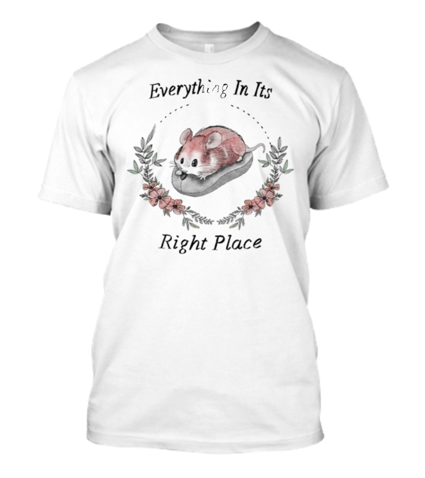 Everything In Its Right Place Mouse Surrounded By Flowers T-Shirt