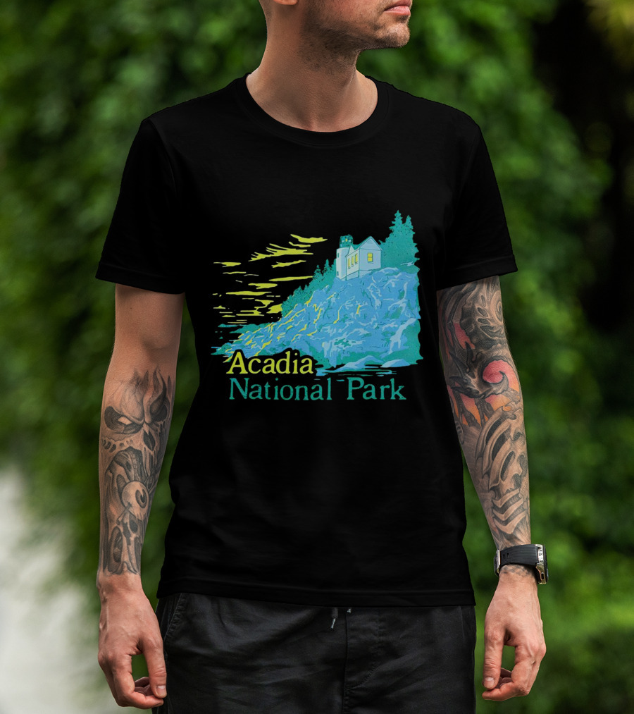 How much will this Acadia National Park Scenic Lighthouse and Rocky Cliff shirt shrink?